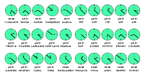 UTC Coordinated Universal Time GMT Greenwich Mean Time, defined as UTC BST British Summer Time, defined as UTC+1 hour IST Irish Summer Time, defined as UTC+1 hour WET Western Europe Time, defined as UTC WEST Western Europe Summer Time, defined as UTC+1 hour CET Central Europe Time, defined as UTC+1 CEST Central Europe Summer Time, defined as UTC+2 EET Eastern Europe Time, defined as UTC+2 EEST Eastern Europe Summer Time, defined as UTC+3 MSK Moscow Time, defined as UTC+3 MSD Moscow Summer Time, defined as UTC+4 AST Atlantic Standard Time, defined as UTC-4 hours ADT Atlantic Daylight Time, defined as UTC-3 hours NST Newfoundland Standard Time, defined as UTC-3.5 hours NDT Newfoundland Daylight Time, defined as UTC-2.5 hours EST Eastern Standard Time, defined as UTC-5 hours EDT Eastern Daylight Saving Time, defined as UTC-4 hours CST Central Standard Time, defined as UTC-6 hours CDT Central Daylight Saving Time, defined as UTC-5 hours MST Mountain Standard Time, defined as UTC-7 hours MDT Mountain Daylight Saving Time, defined as UTC-6 hours PST Pacific Standard Time, defined as UTC-8 hours PDT Pacific Daylight Saving Time, defined as UTC-7 hours HST Hawaiian Standard Time, defined as UTC-10 hours AKST Alaska Standard Time, defined as UTC-9 hours AKDT Alaska Standard Daylight Saving Time, defined as UTC-8 hours AEST Australian Eastern Standard Time, defined as UTC+10 hours AEDT Australian Eastern Daylight Time, defined as UTC+11 hours ACST Australian Central Standard Time, defined as UTC+9.5 hours ACDT Australian Central Daylight Time, defined as UTC+10.5 hours AWST Australian Western Standard Time, defined as UTC+8 hoursGiven the current time in one time zone, you are to compute what time it is in another time zone. The first line of input contains N, the number of test cases. For each case a line is given with a time, and 2 time zone abbreviations. Time is given in standard a.m./p.m. format with midnight denoted "midnight" and noon denoted "noon" (12:00 a.m. and 12:00 p.m. are oxymorons). Assuming the given time is the current time in the first time zone, give the current time in the second time zone.